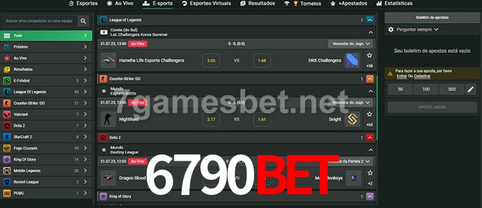 O 6790bet oferece uma grande seleção de opções de apostas em e-sports com probabilidades competitivas